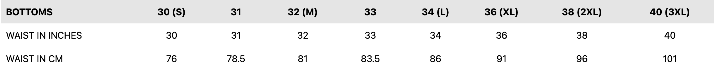 (NOTE:- Use your hip measurement as the leading guide for pants & denim.)